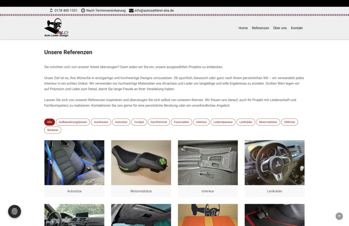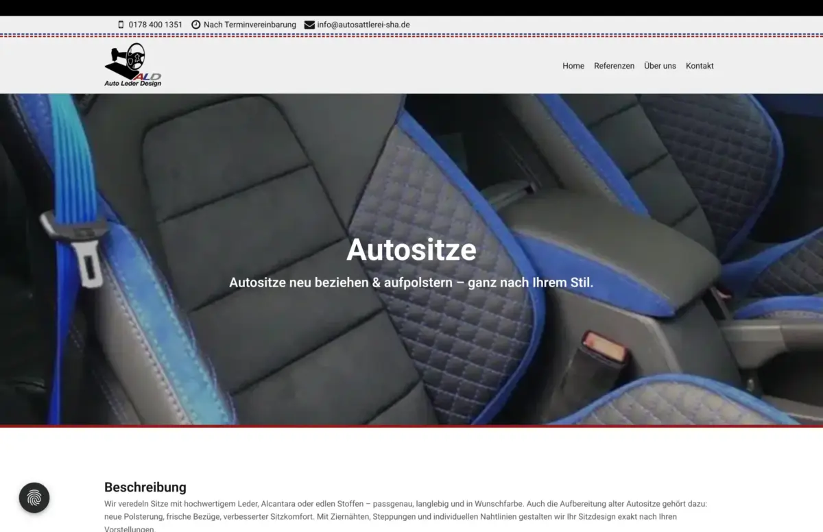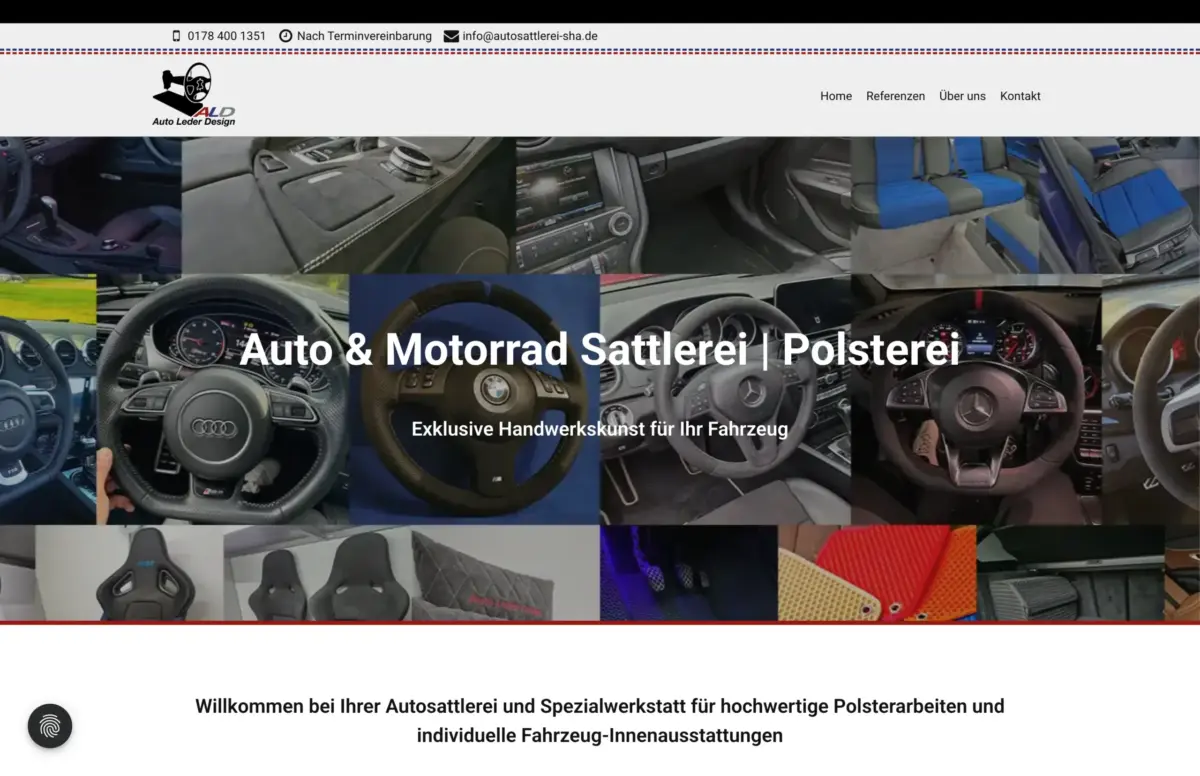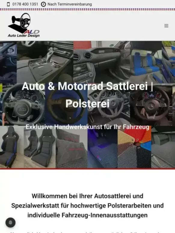 ALD Auto Leder Design ist die Autosattlerei und Spezialwerkstatt für hochwertige Polsterarbeiten und individuelle Fahrzeug-Innenausstattungen in Schwäbisch Hall. ALD macht aus jedem Interieur ein Unikat – egal ob sportlich, klassisch oder ganz nach dem persönlichen Stil und Wunsch des Kunden. Sehr gerne haben wir es übernommen, den Webauftritt zu realisieren.