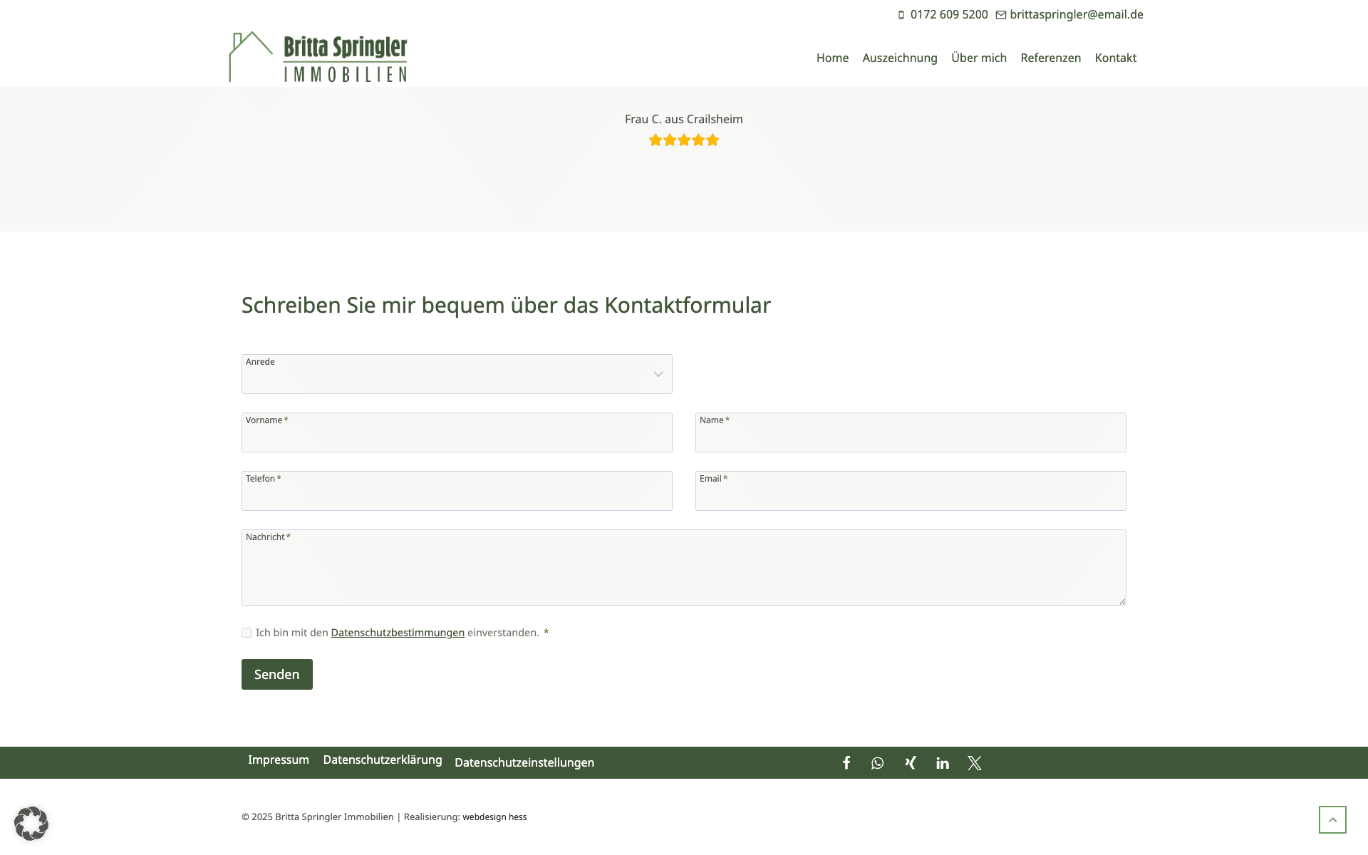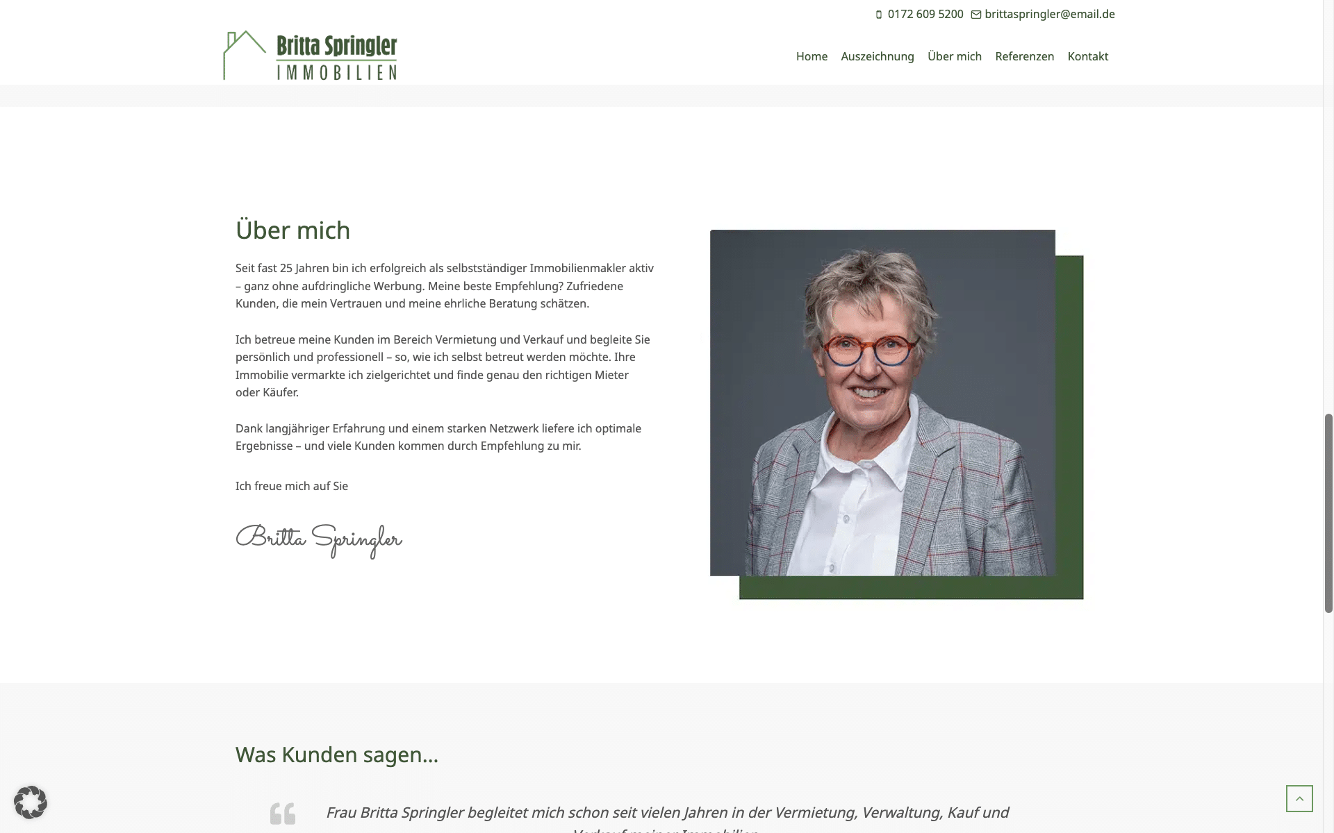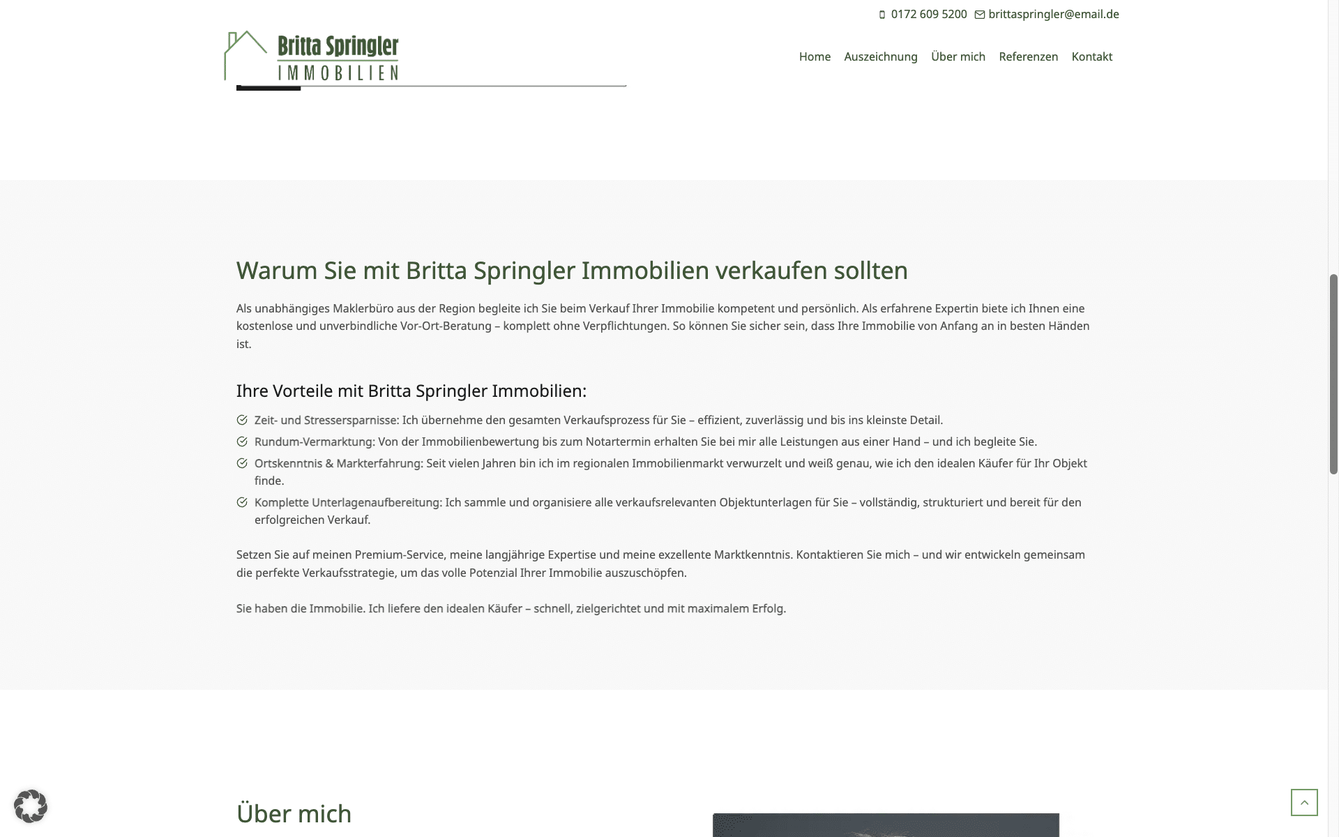 Wir haben für Britta Springler Immobilien in Crailsheim eine moderne, suchmaschinenoptimierte Webseite mit responsivem Design und schneller Ladezeit erstellt.